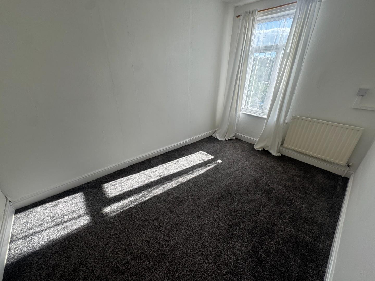 A second bedroom with ample natural light, a window with curtains, and a carpeted floor. It offers a cosy, versatile space suitable for sleeping, study or storage needs.