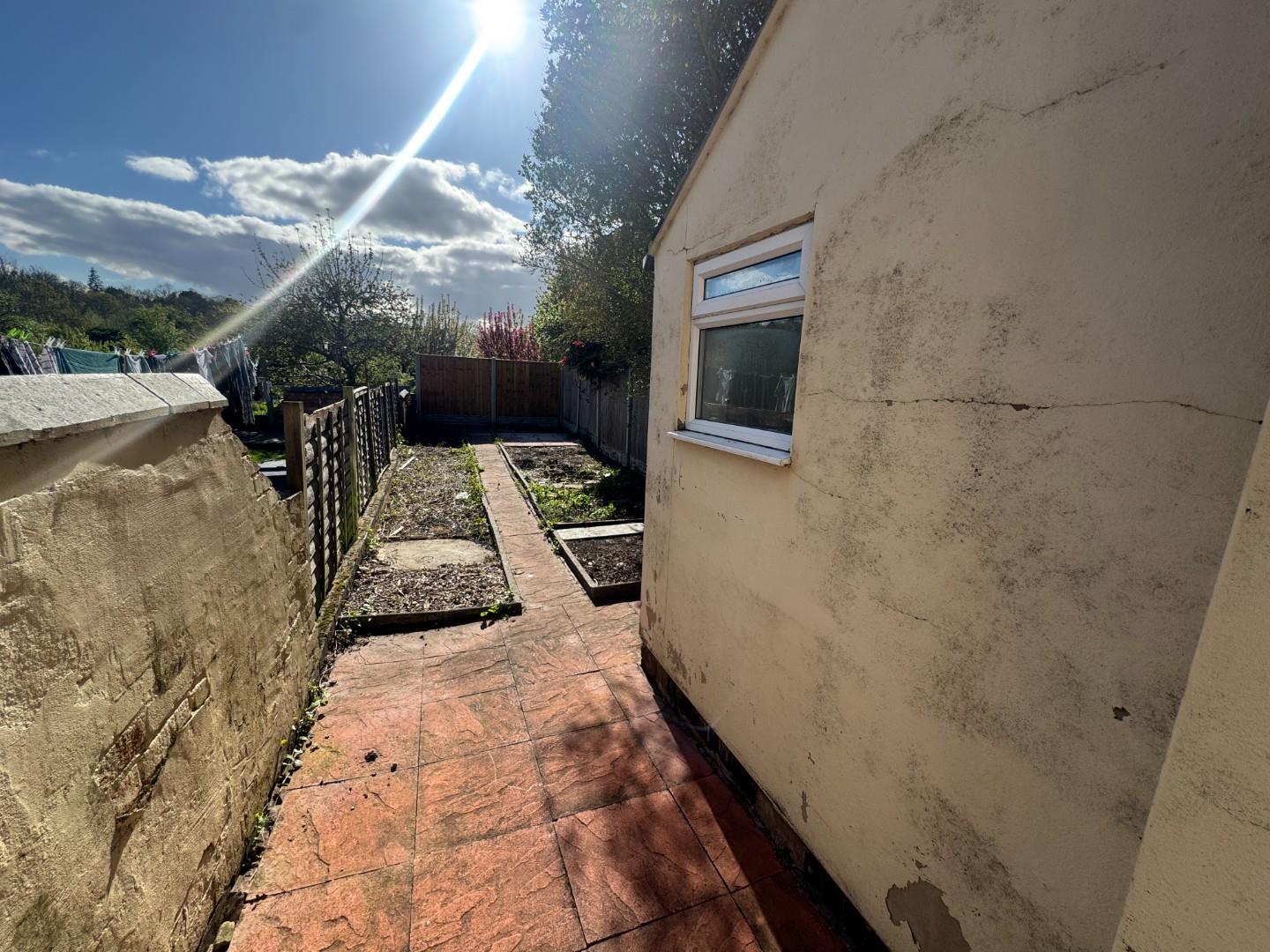 The rear garden features a paved patio area and a fenced boundary, providing private outdoor space with potential for gardening or relaxing in the fresh air.