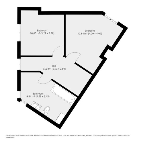 A second bedroom offers carpeted flooring and a window with patterned curtains that provide natural light. The room is bright and neutral, offering a comfortable and flexible space for rest or study.