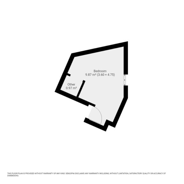This bedroom is situated on the top floor, featuring a vaulted ceiling with a skylight window that brings in daylight. The room is finished with dark carpeting and neutral walls, creating a cozy and private sleeping area.